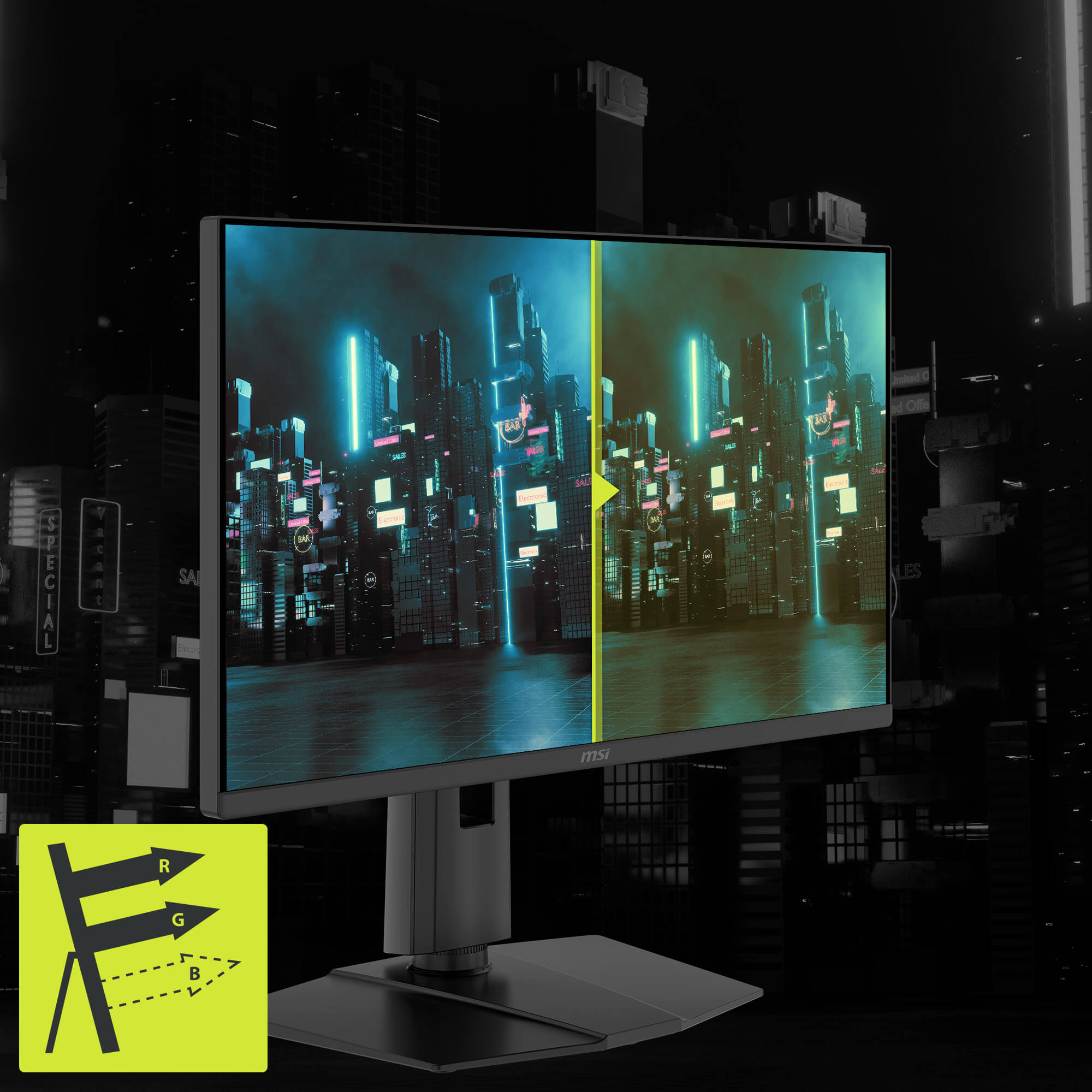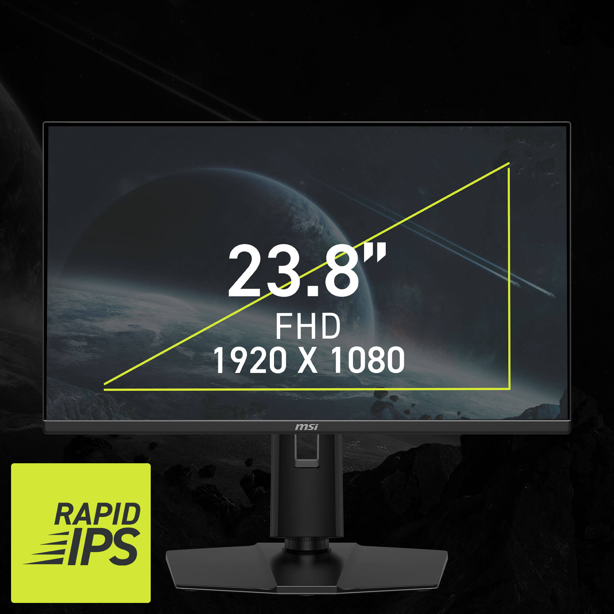 - Rapid IPS Panel – Provides 0.5ms (GtG, Min.) response time, optimizes screen colors and brightness.