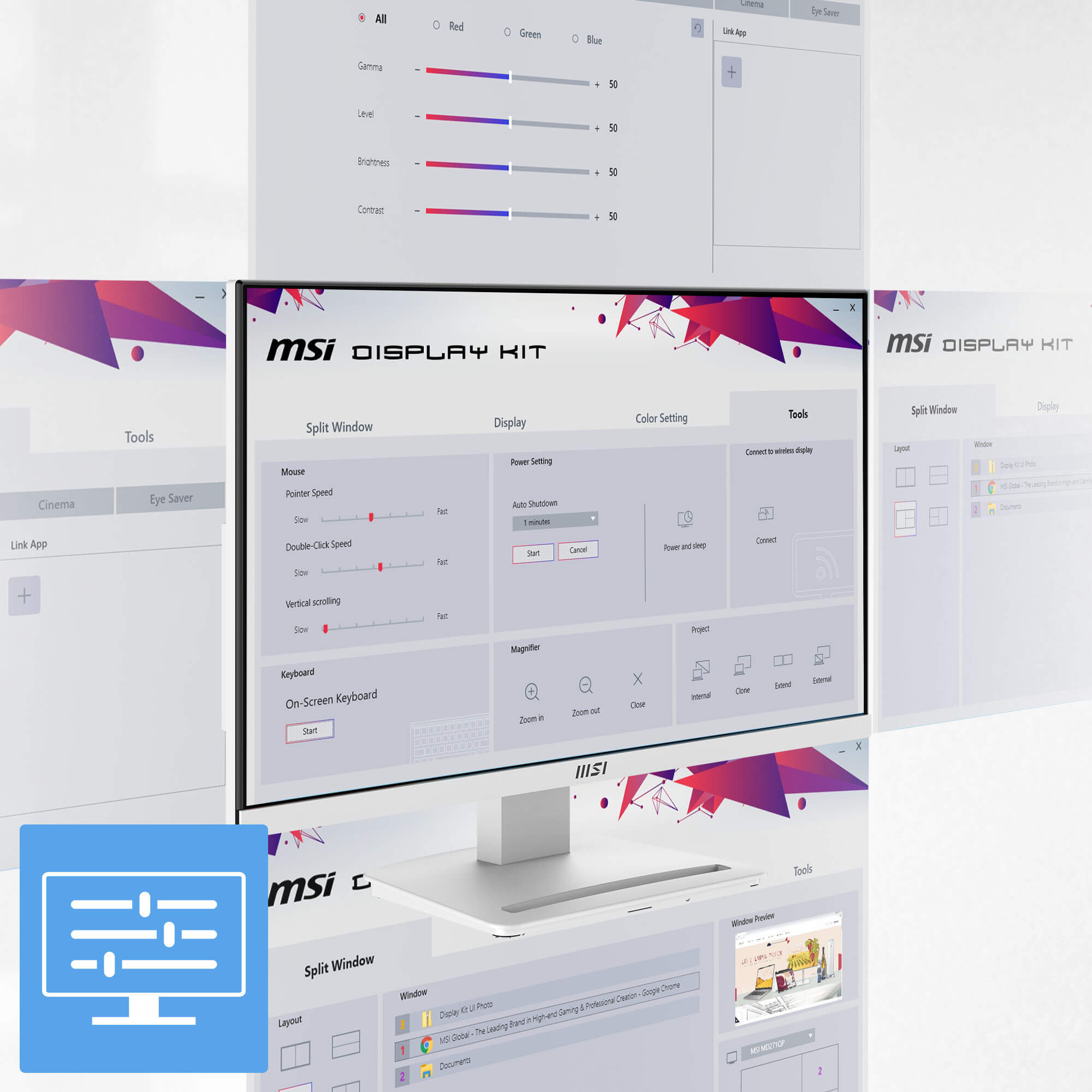 - MSI Eye-Q Check helps have self-check eyes & reminds to take a rest while using the monitor for a long time.
