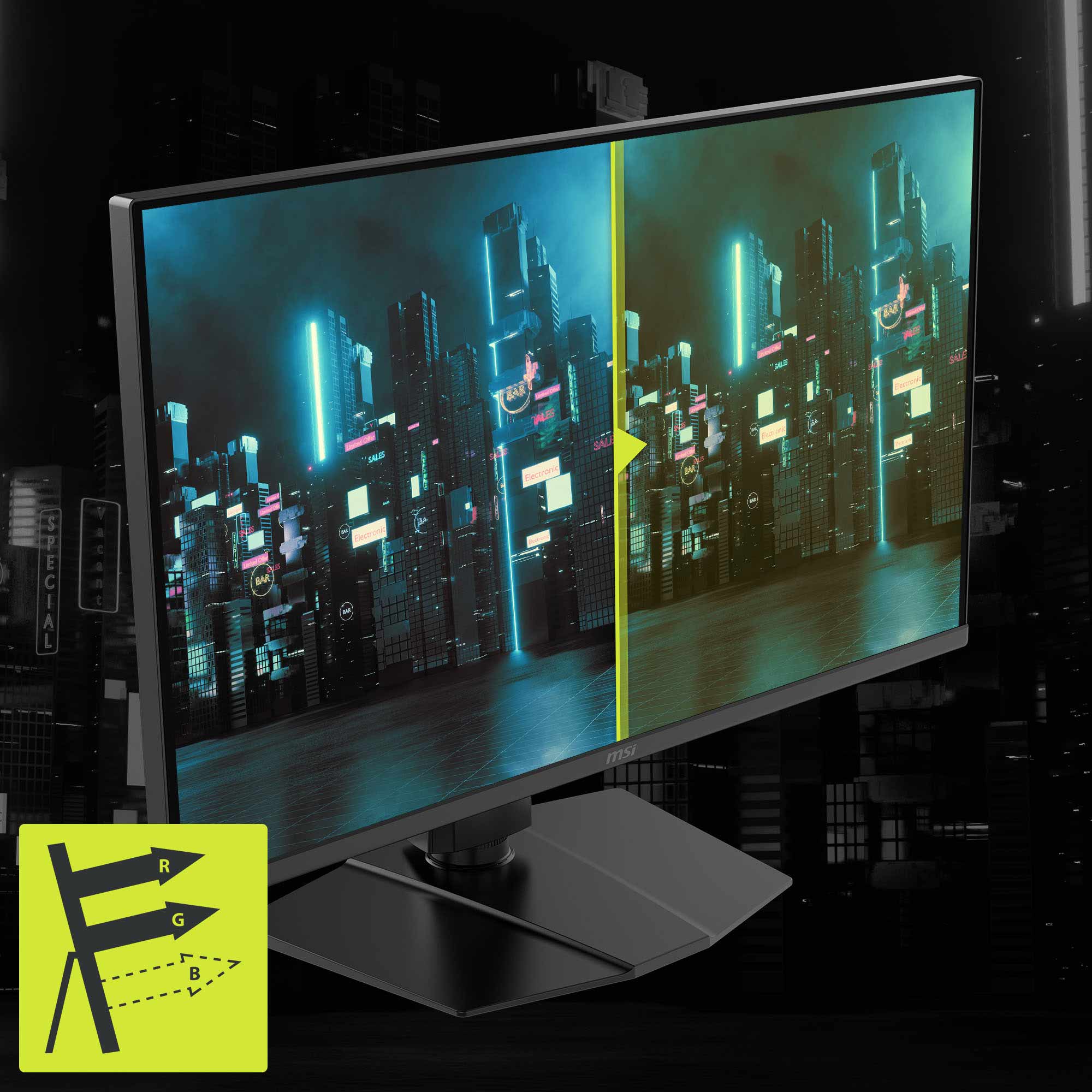 - Rapid IPS Panel – Provides 0.5ms (GtG, Min.) response time, optimizes screen colors and brightness.