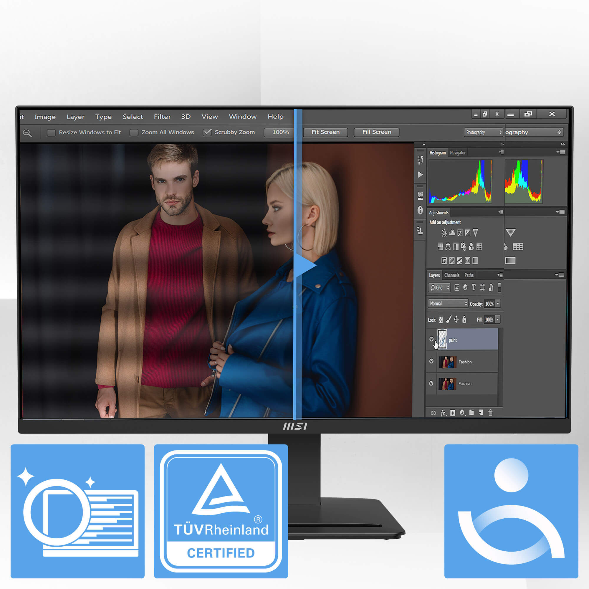 - MSI EyesErgo technology with Anti-Flicker technology helps prevent eye strain and fatigue.