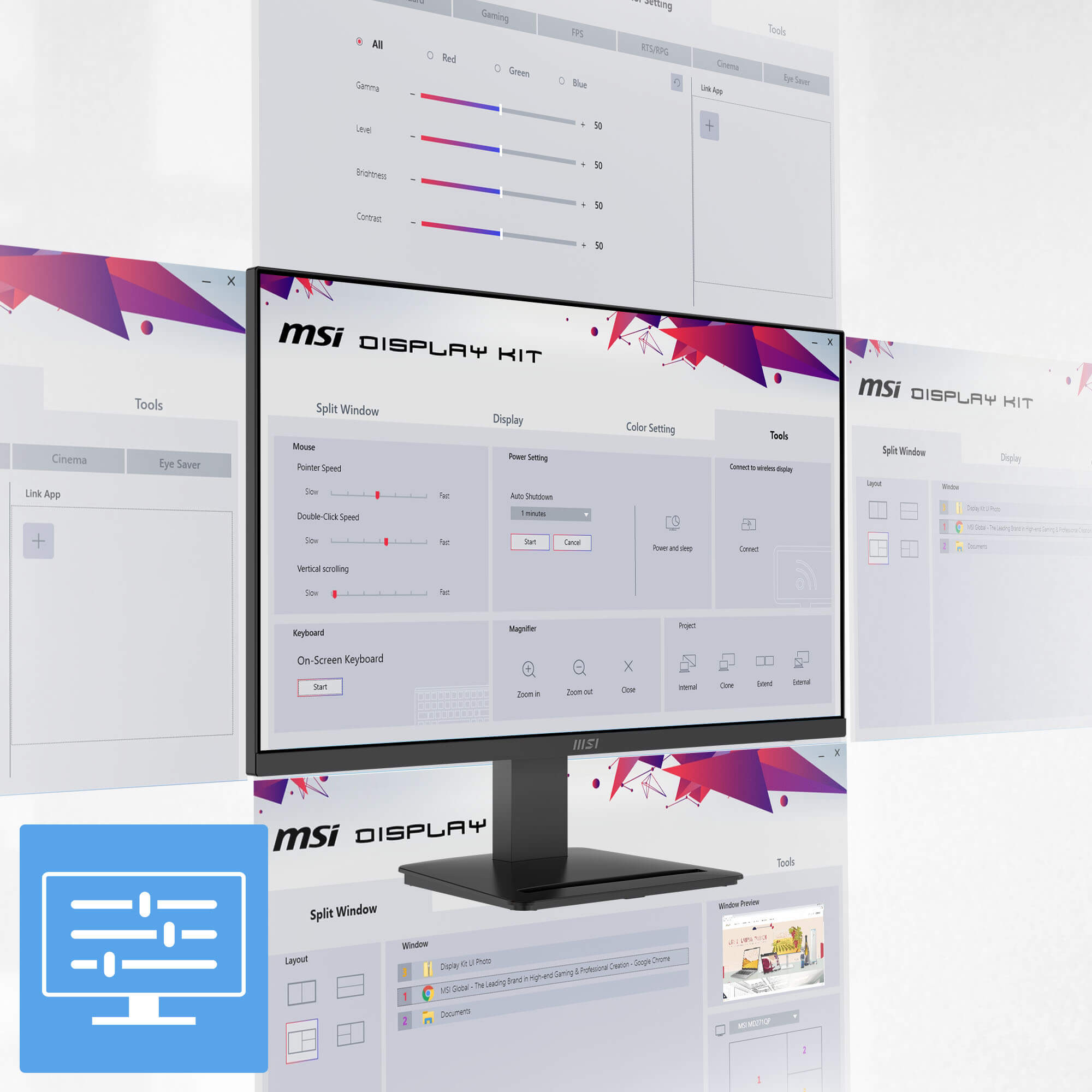 - MSI Eye-Q Check helps have self-check eyes & reminds to take a rest while using the monitor for a long time.