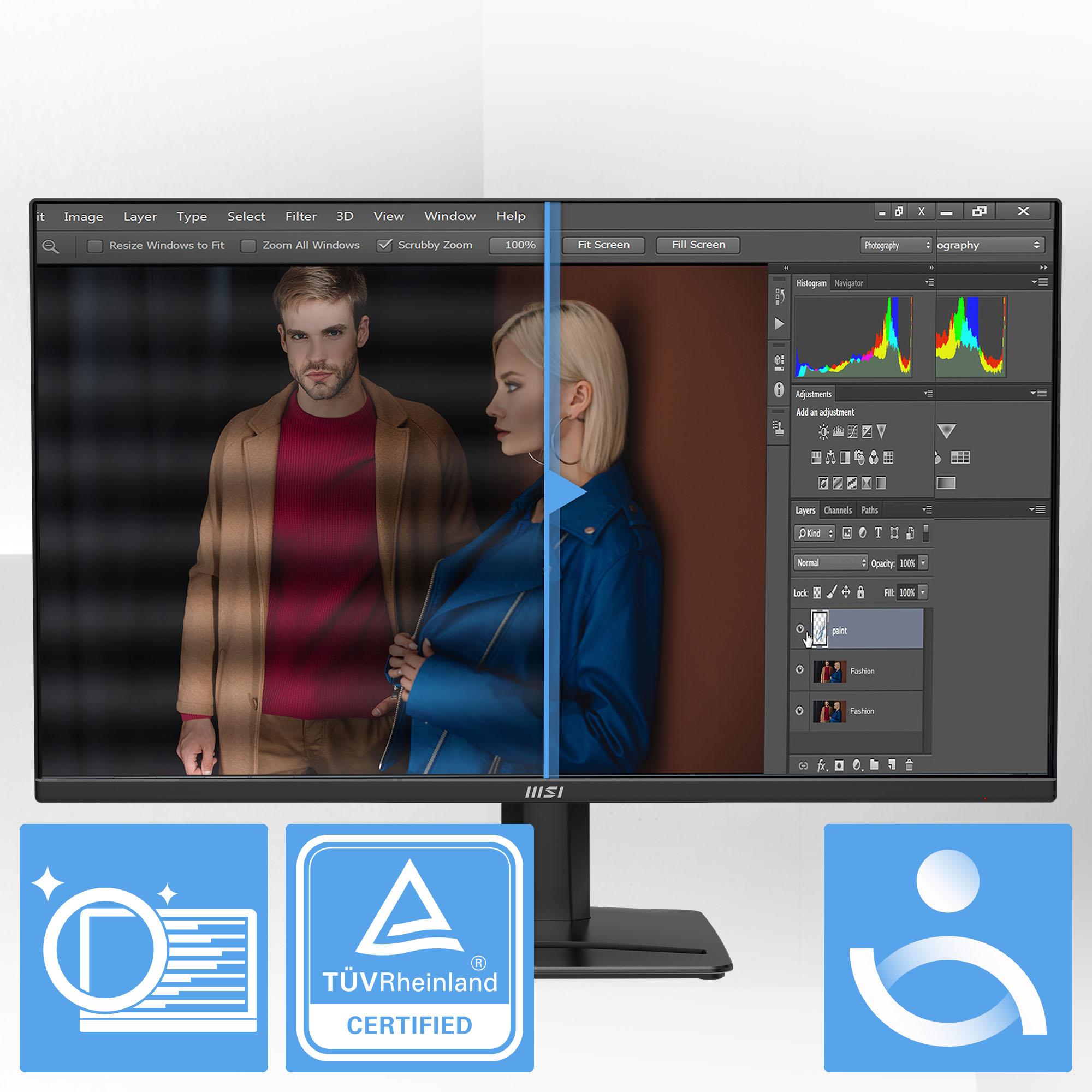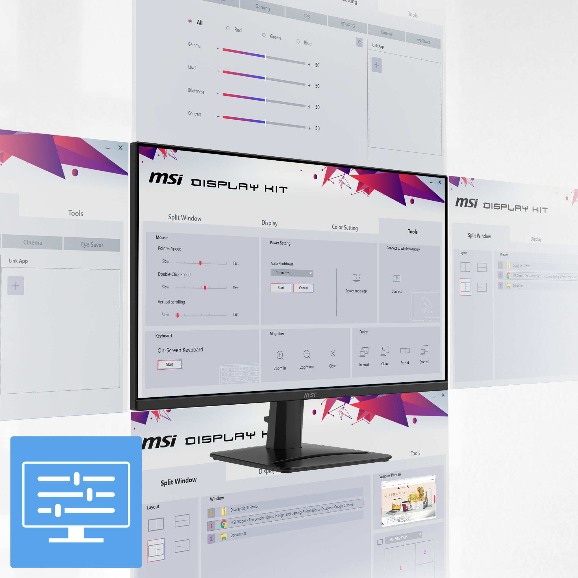 - MSI EyesErgo technology with Anti-Flicker technology helps prevent eye strain and fatigue.